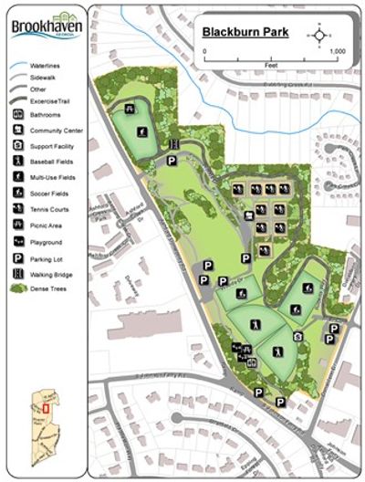 Blackburn Park is a 50-acre multi-use park located along Ashford Dunwoody Road and intersects with Johnson Ferry Road in the heart of Brookhaven in Dekalb County. The park is currently operated by the City of Brookhaven Parks and Recreation Department. Park amenities include multi-use sports fields, tennis courts, playgrounds and multiple walking/jogging/hiking trails that are a part of PATH Foundation (https://www.pathfoundation.org/). The park also enjoys a covered pavilion that can be rented for picnics, family reunions and gatherings. Youth sports are offered through baseball, softball, and soccer programs that operate through the park.